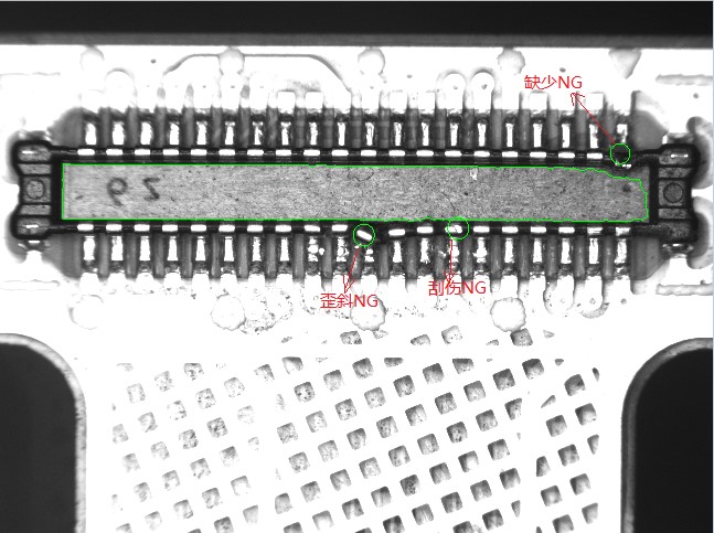 檢測PIN腳高低、缺失、歪斜、表麵粘錫等缺陷,以及平頭和圓頭PIN腳位置是否正確