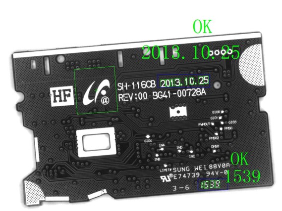 係統采用光學字符驗證技術,通過工業相機捕獲PCB元件表麵的字符信息(如型號、批次號),利li用yong圖tu像xiang處chu理li算suan法fa進jin行xing實shi時shi比bi對dui。使shi用yong康kang耐nai德de自zi主zhu研yan發fa的de視shi覺jiao平ping台tai,可ke快kuai速su識shi別bie字zi符fu內nei容rong,確que保bao與yu預yu設she信xin息xi一yi致zhi,避bi免mian因yin字zi符fu錯cuo誤wu導dao致zhi的de混hun料liao。