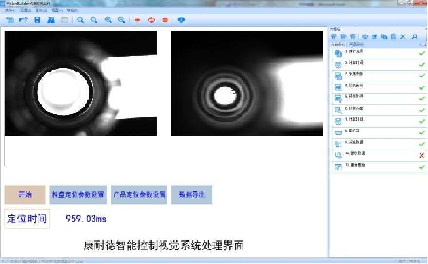 定位產品,給出中心坐標及角度,機械手吸取到料盤