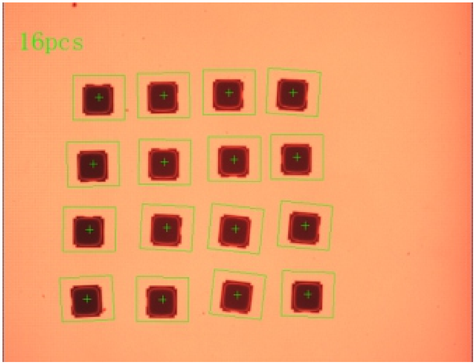 使用康耐德機器視覺aoi檢測係統的彩色轉灰功能,提取零件幾何形狀特征,包括麵積、輪廓、重心。根據零件特征值判斷圖片內零件數量。