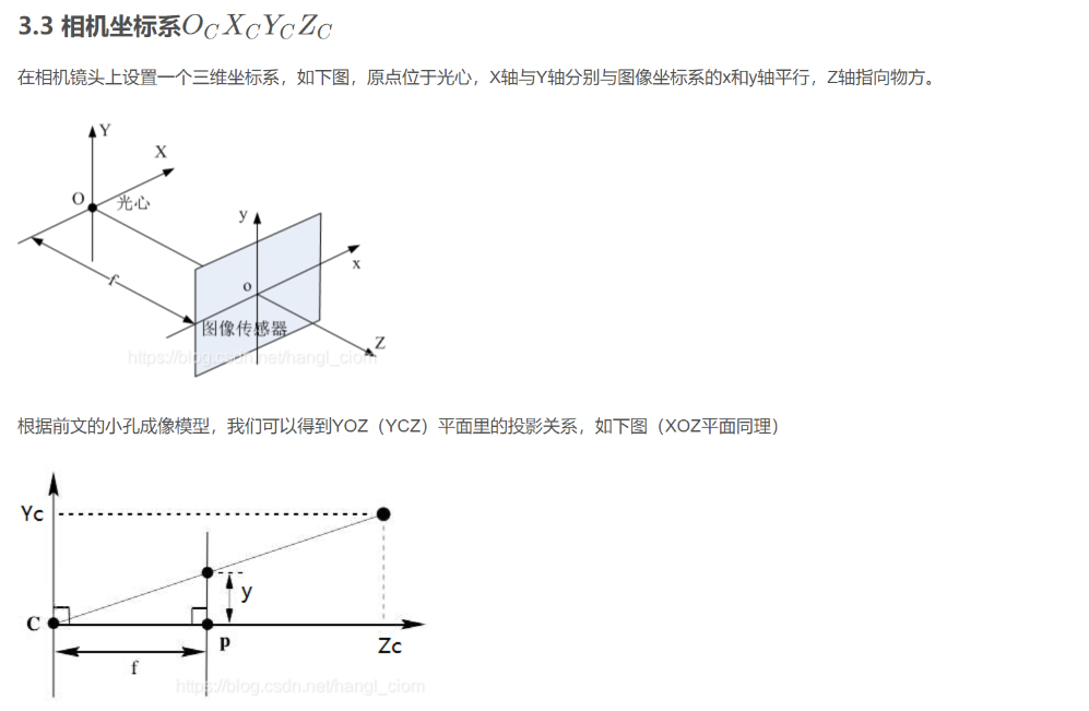 後麵的各個坐標係及其相互關係都是基於這個小孔成像模型推出。