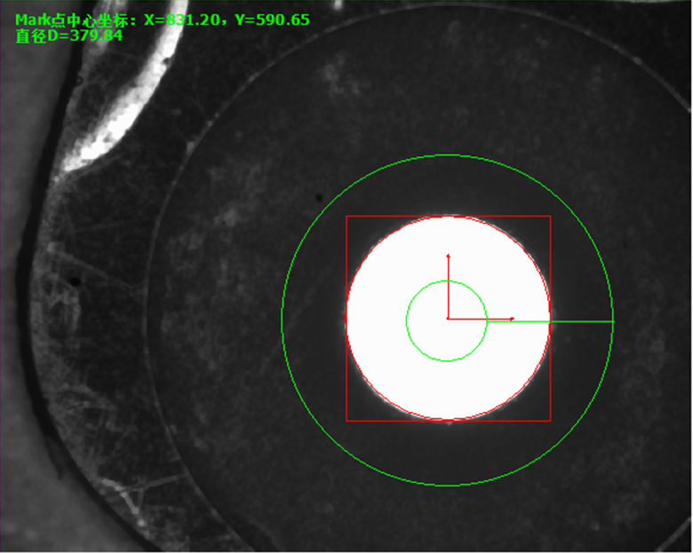 Mark點的檢測,因為目標本身比較小,1~2mm的大小,我們使用直徑為42mm的環形光源來照明,即可滿足要求。