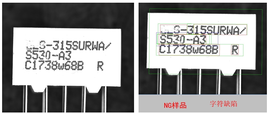 康耐德的視覺檢測係統在電子元器件生產中得到了廣泛應用,如電容外觀檢查方案中,可自動檢查電容字符麵的字符印刷是否合格。